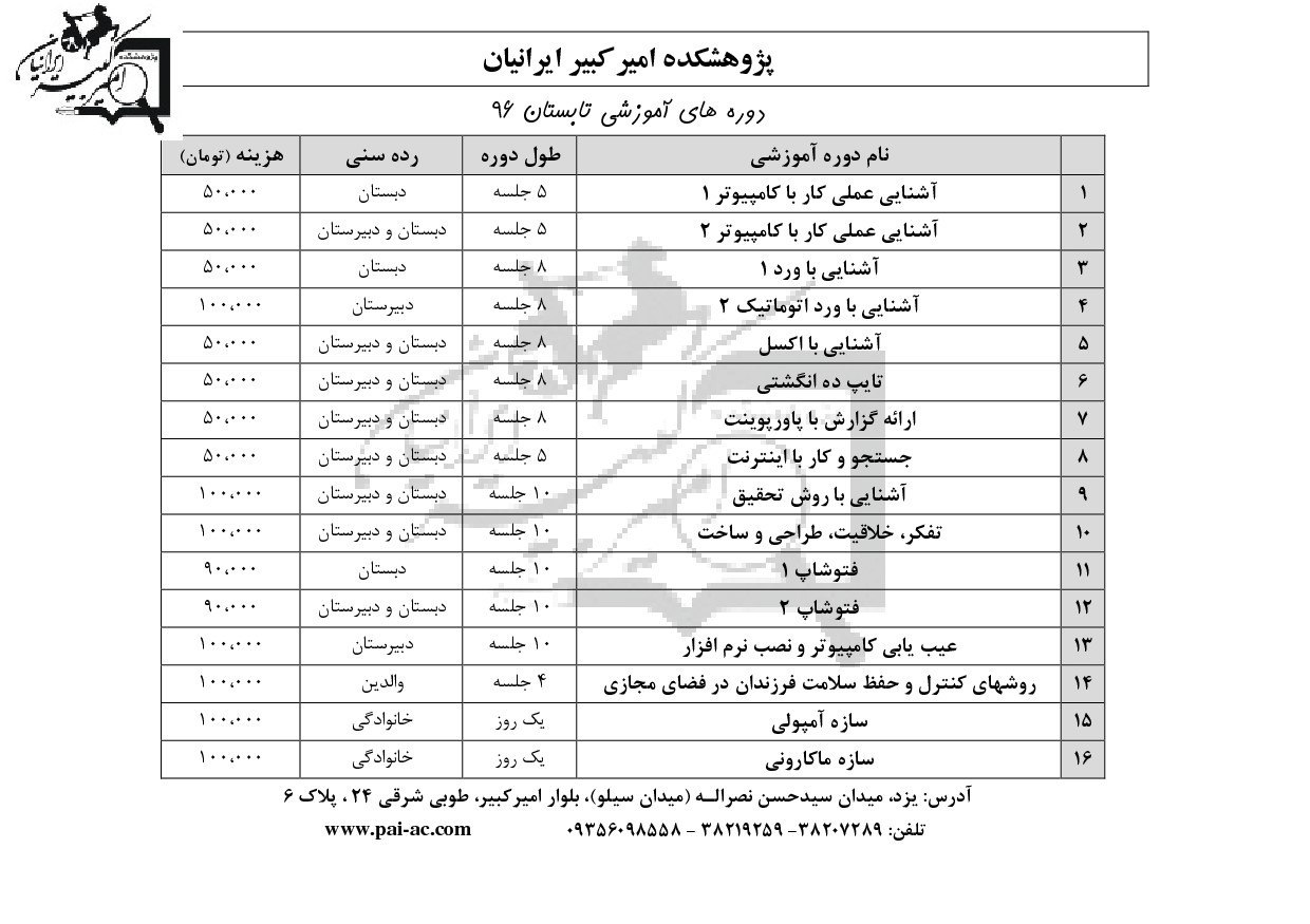 دوره های تابستان۹۶